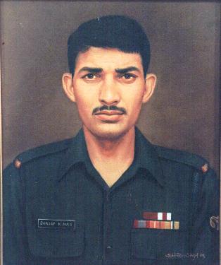 Rifleman Sanjay Kumar, 13 JAK Rifles, was the leading Scout of a team tasked to capturing Area Flat Top on 04 July 1999 being held by Pakistani-backed militants. Having scaled the cliff, the team was pinned down by machine gun fire from an enemy bunker, 150 meters away. Rifleman Kumar, realizing the magnitude of the problem and the detrimental effect this bunker would have in the capture of Area Flat Top, displayed extraordinary courage. Without concern for personal safety, he crawled alone up the ledge, along a flank, and charged towards the enemy bunker, through a hail of automatic fire. Almost instantly he took two bullets in his chest and forearm.